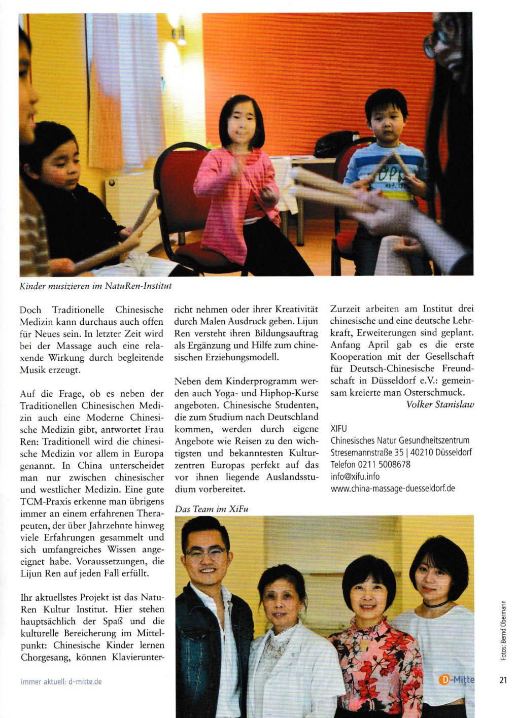 Interview mit dem Magazin D-Mitte. Das Magazin D-Mitte, herausgegeben von Roland Ermrich, berichtet in regelmäßigen Ausgaben über den Düsseldorfer Stadtteil Mitte, über seine Menschen, Einrichtungen, Geschäfte und Lokalitäten und bietet auch an, dass sich die hiesigen Bewohner stärker am Geschehen in diesem Quartier beteiligen können und sollen.